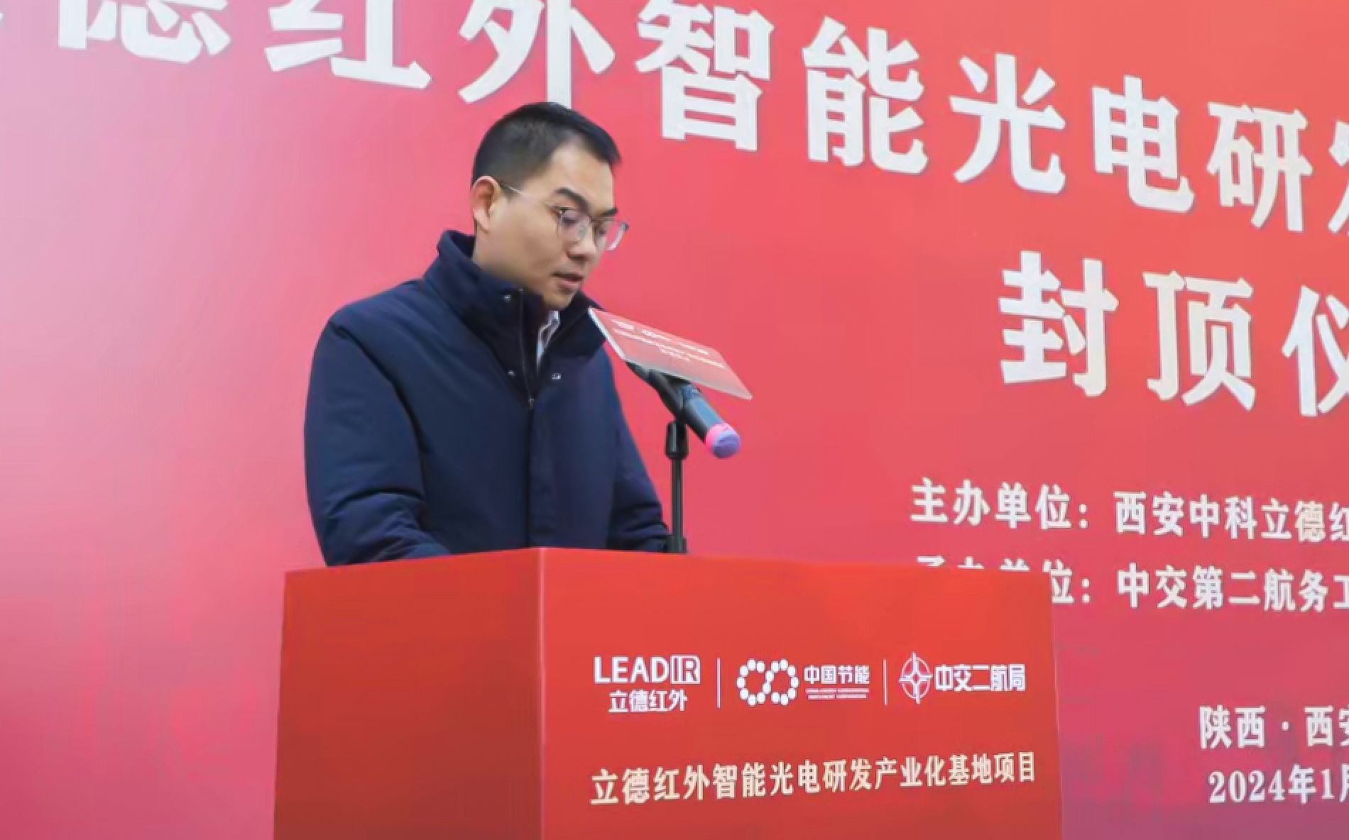中交二航局陜西分公司總經(jīng)理豐逍野在致辭中對(duì)項(xiàng)目順利封頂表示祝賀,并向立德紅外給予中交二航局的信任和支持表示感謝。他承諾,將始終秉承著爭(zhēng)科技領(lǐng)先,創(chuàng)管理一流的企業(yè)理念,高質(zhì)高效推進(jìn)后續(xù)建設(shè),按時(shí)保質(zhì)完成施工任務(wù),全力將項(xiàng)目打造成精品項(xiàng)目。