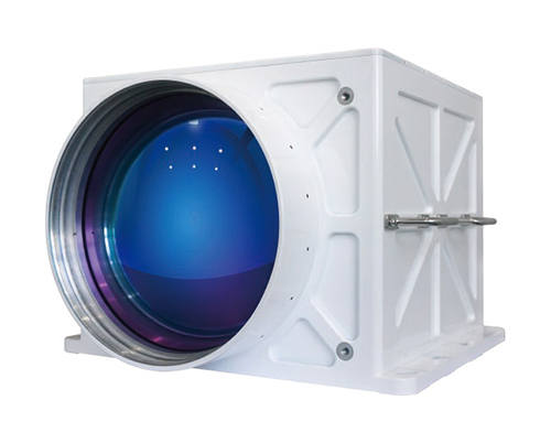 中波紅外熱像儀由大口徑透射式連續(xù)變倍鏡頭和高靈敏度成像探測組件組成。鏡頭焦距60mm~600mm@F2,光學(xué)口徑高達(dá)Φ314mm;成像探測組件分辨率640x512@15μm,采用低噪聲高靈敏度成像技術(shù),具有自適應(yīng)非均勻性校正、噪聲濾波、大動態(tài)范圍圖像增強(qiáng)、自動調(diào)光等智能化圖像處理算法??蓮V泛應(yīng)用于光電經(jīng)緯儀、光電轉(zhuǎn)塔等平臺,實現(xiàn)大視場目標(biāo)搜索和小視場超遠(yuǎn)距離探測跟蹤,對空典型目標(biāo)探測距離可達(dá)1500Km。